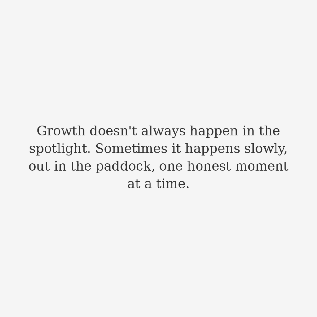 I believe growth does not always happen in the spotlight. Sometimes it happens slowly, out in the paddock, one honest moment at a time.